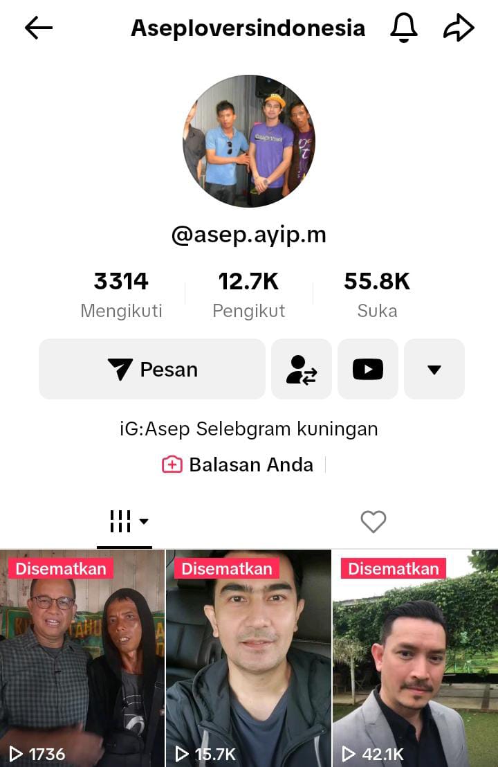 Dengan nama akun Tik Tok Asep Lovers Indonesia banyak yang mengikuti 3314, pengikut 12.7 K dan suka 55.5 K.
