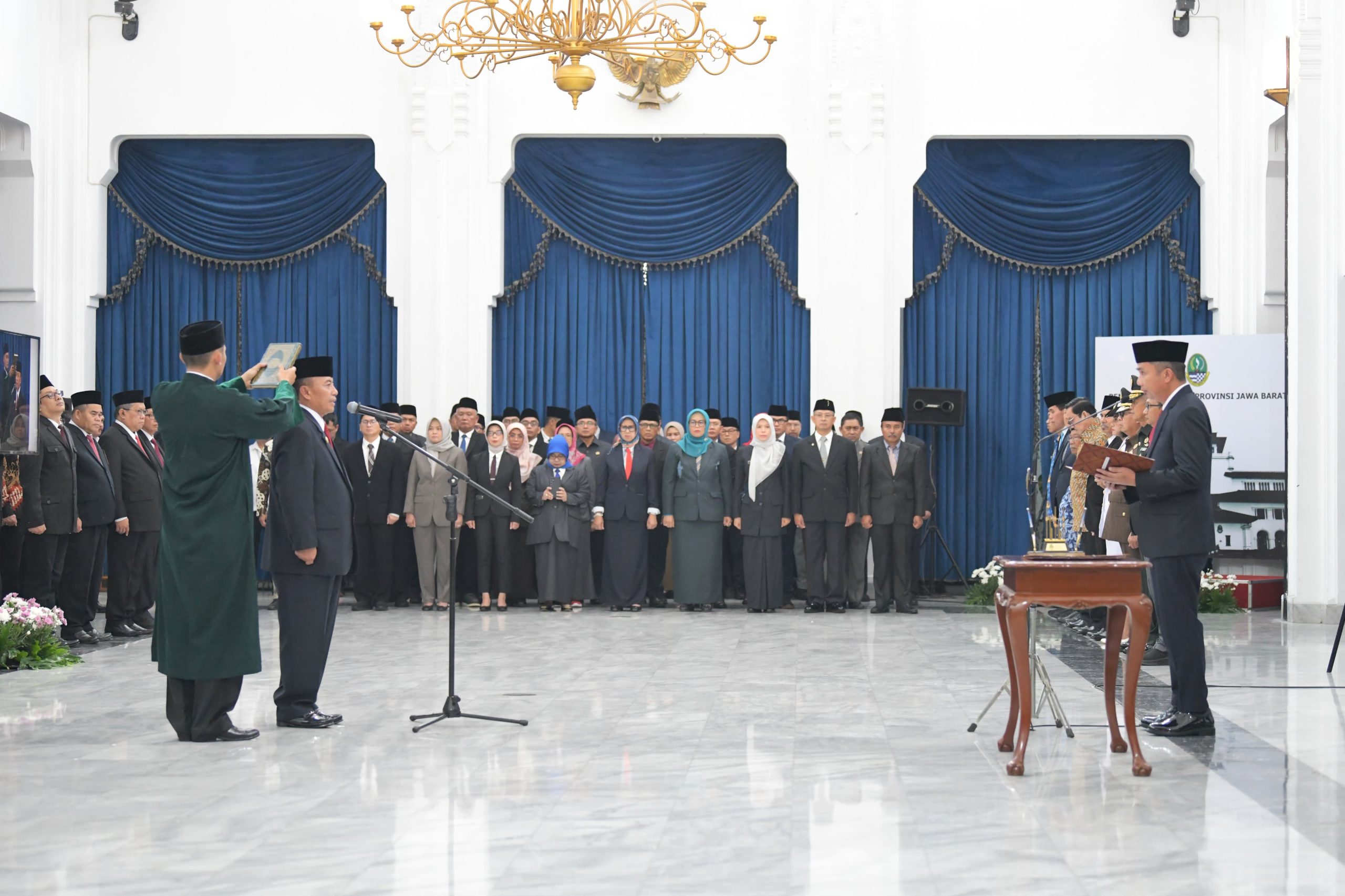JABAR ONLINE, BANDUNG – Penjabat Gubernur Jawa Barat Bey Machmudin melantik Herman Suryatman menjadi Sekretaris Daerah Provinsi Jabar. Pelantikan berlangsung di Aula Barat Gedung Sate, Kota Bandung, Senin (1/4/2024).