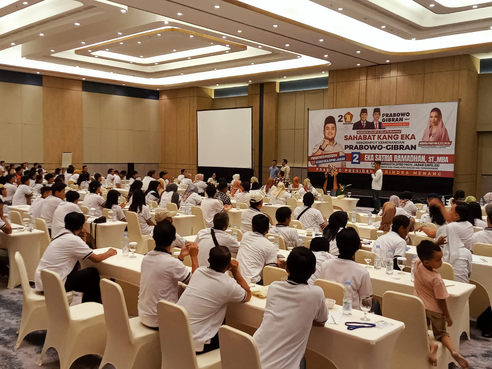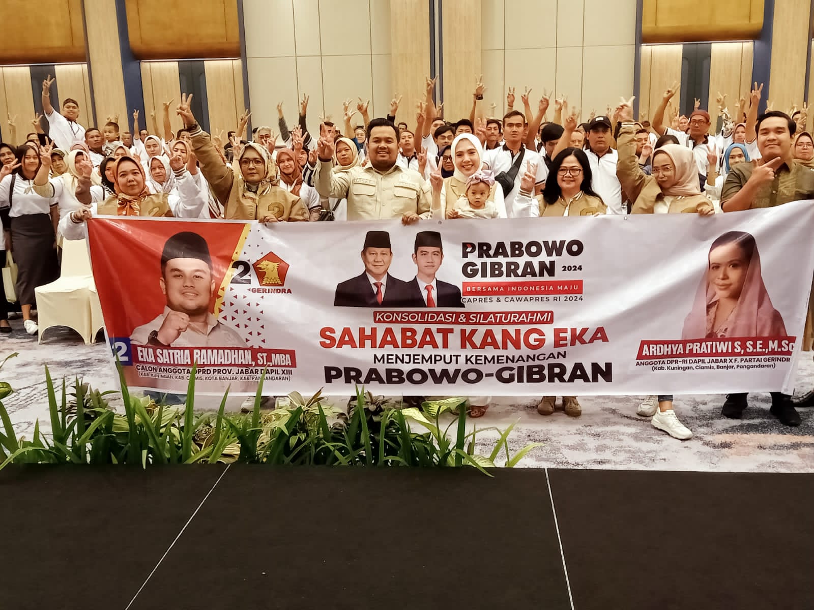 “Konsolidasi menjemput kemenangan ini, kami tidak hanya memenangkan diri sendiri untuk pileg, tetapi juga untuk memenangkan ‘Prabowo-Gibran” sebagai Capres dan Cawapres yang maju dari Partai Gerindra, partai tempat kami yang maju di tingkat Propinsi,” kata Eka.