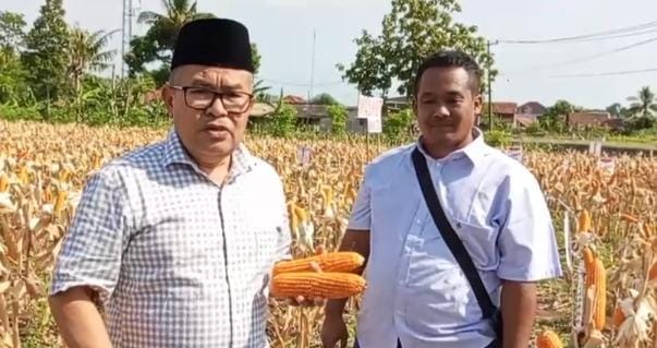 “Di hadapan kita ini adalah panen jagung, tentunya ini adalah satu kegiatan di bidang pertanian yang akan mengangkat harkat derajat petani,” ujar Kamdan saat bersama Aris dari PT Macho Bisi.