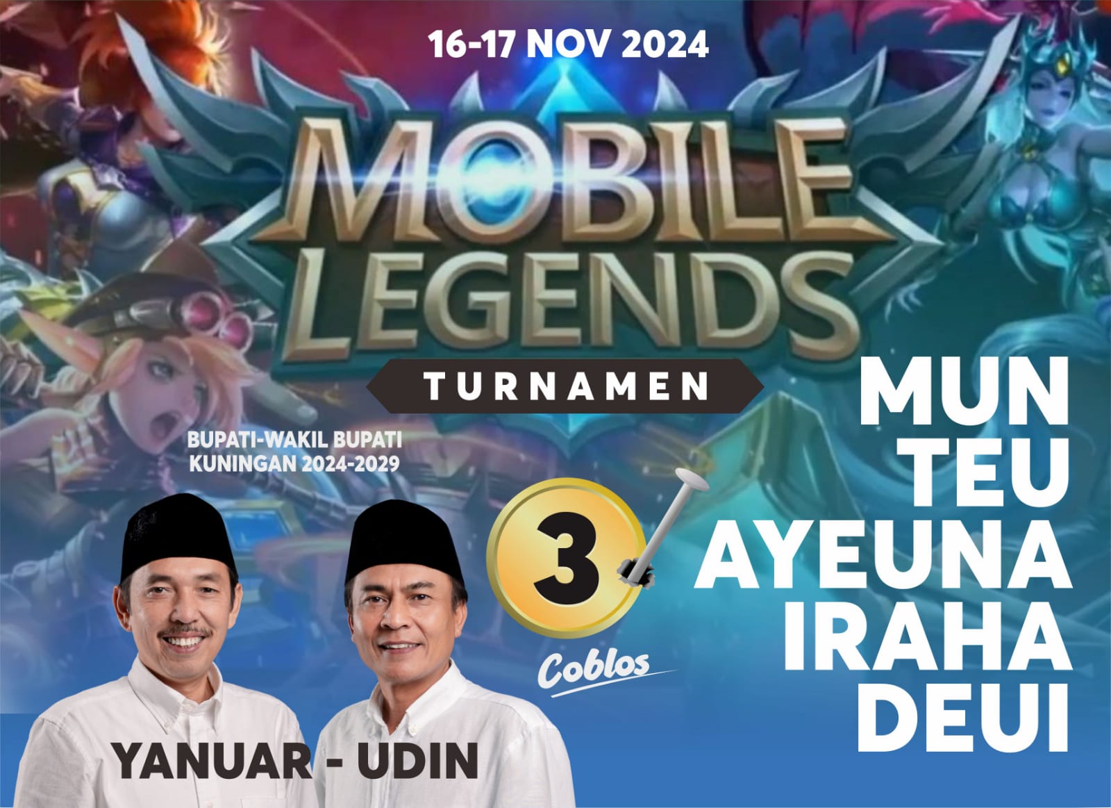 “Perhatian dari pak haji Yanuar dan haji Udin memang disiapkan menyeluruh menyentuh semua kalangan. Nah kompetisi Mobile Legends ini salah satu bentuk nyata dukungan dari Paslon kami,” ucapnya dalam keterangan kepada kuninganonline.com, Jumat (15/11/2024).