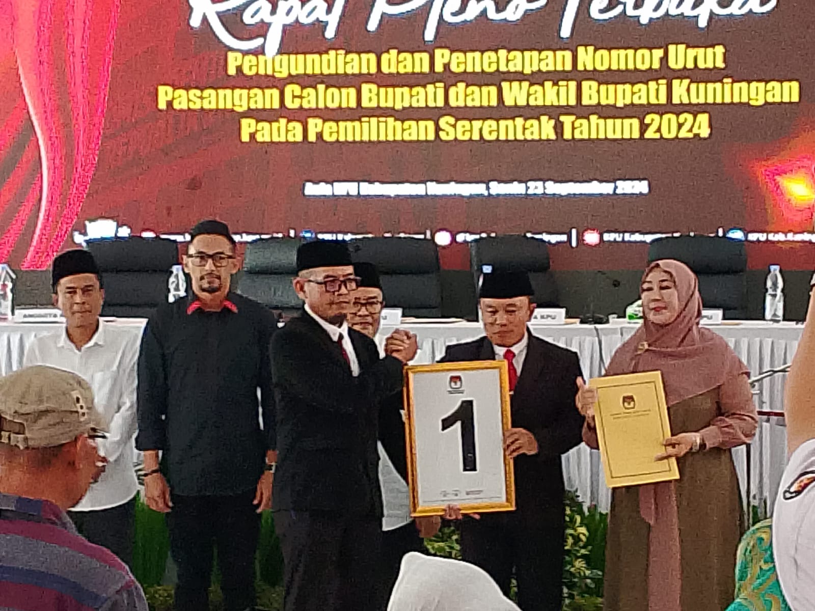 “Alhamdulillah, tahapan pengundian nomor urut dan penetapan pasangan calon sudah selesai. Terima kasih yang sebesar-besarnya kepada seluruh jajaran KPU Kuningan yang bertanggung jawab dan bekerja keras. Ini adalah langkah penting dalam proses demokrasi yang kita jalani untuk Kuningan,” ujarnya.