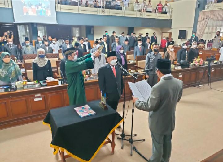 Pengambilan sumpah dan janji jabatan serta pelantikan Anggota DPRD untuk PAW atas nama Eman Suherman dipimpin langsung oleh Ketua DPRD Kuningan, Nuzul Rachdy.