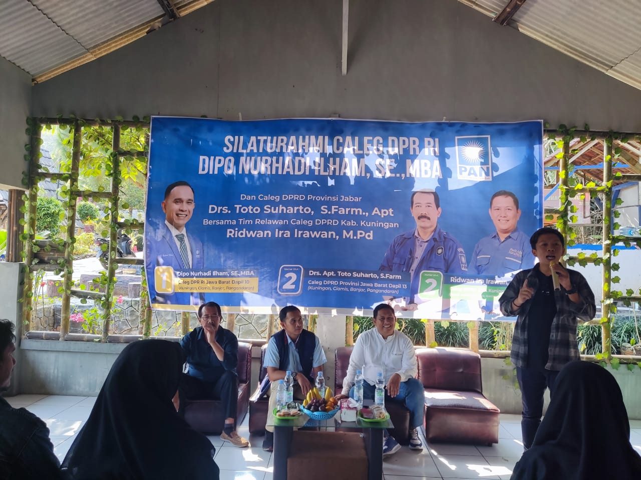 Caleg DPRD Kuningan Dapil 5, Ridwan Ira Irawan menyampaikan kegiatan silahturahmi dalam rangka mempererat tali persaudaraan demi kemenangan Dipo Nurhadi Ilham Caleg DPR RI Dapil Jabar 10, kemudian Caleg DPRD Provinsi Jabar 13, Toto Suharto.