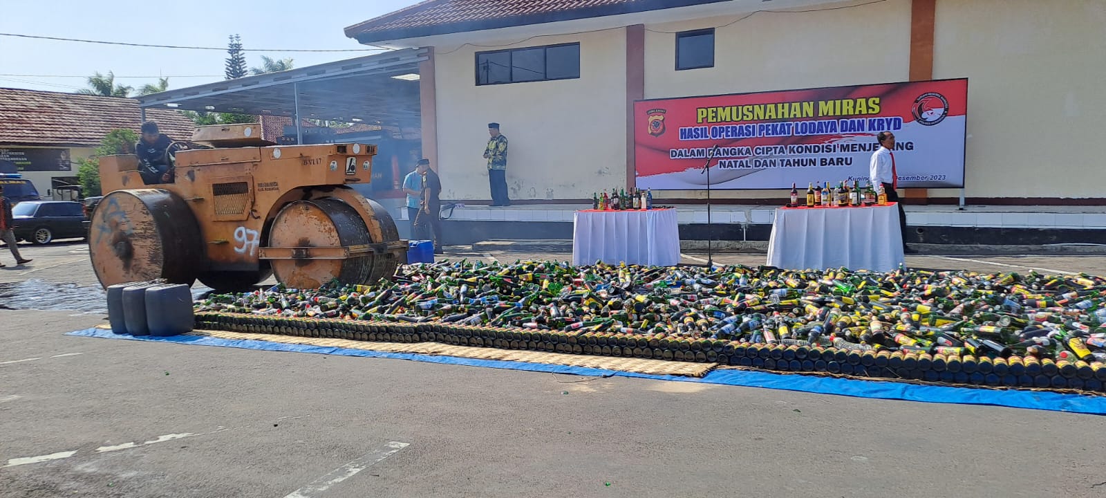 “Melalui pemusnahan ribuan botol miras, ini merupakan bentuk keseriusan dan wujud nyata kita bersama demi menjadikan Kuningan aman dan kondusif. Apalagi menjelang perayaan Hari Natal dan Tahun Baru 2024, sekaligus menyambut Pemilu 2024,” sebutnya.