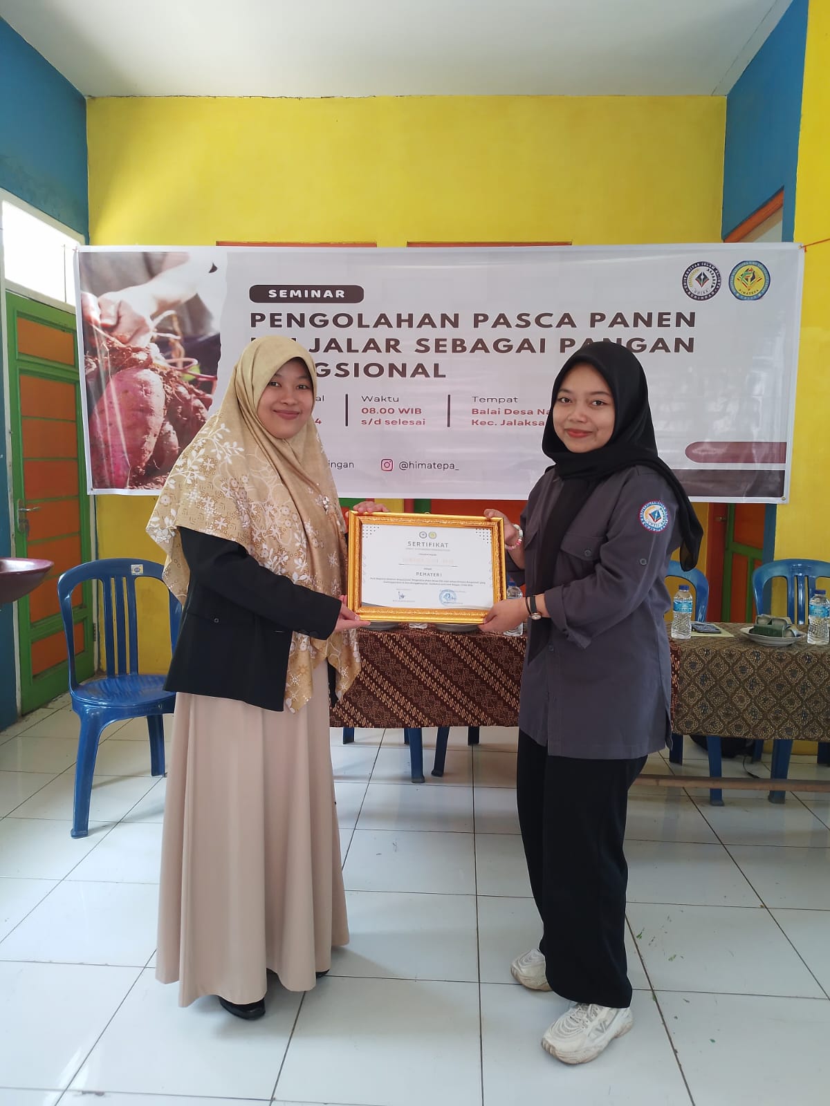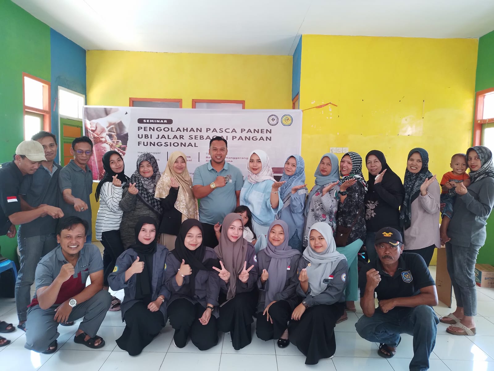 Kegiatan tersebut berkerjasama dengan Pemdes Nanggerang, juga turut hadir mengikuti dari kelompok tani, ibu-ibu PKK, Karangtaruna, dan masyarakat setempat. Dengan mengusung tema ‘Pengolahan Pasca Panen Ubi Jalar sebagai Pangan Fungsional’.