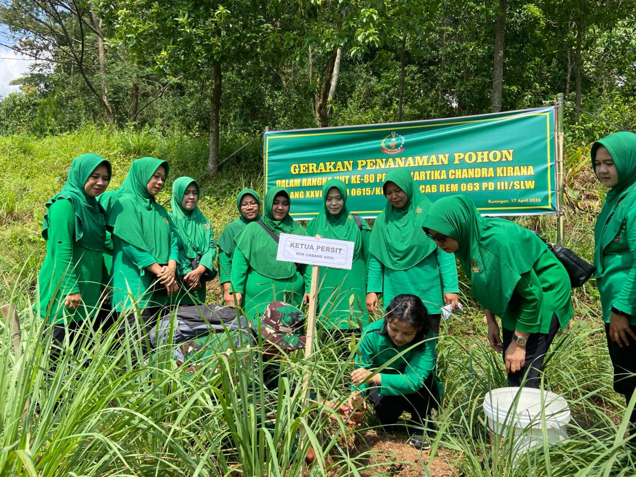 KUNINGAN ONLINE — Dalam rangka memperingati Hari Ulang Tahun (HUT) ke-80 Persit Kartika Chandra Kirana (KCK) jajaran Persit bersama sejumlah organisasi perempuan dan instansi terkait menggelar kegiatan penanaman pohon di Kebun Raya Kuningan, tepatnya di Desa Padabeunghar, Kecamatan Pasawahan, Jumat (17/4/2026).