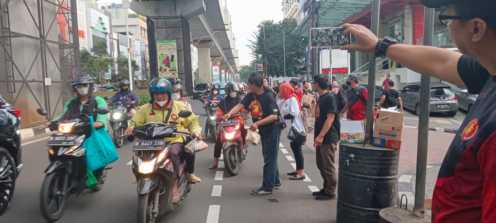 JAKARTA ONLINE – Satuan Relawan Indonesia Raya (SATRIA) Organisasi Sayap (Orsap) Partai Gerindra membagikan takjil dan nasi box kepada masyarakat di sekitar kantor PP SATRIA, Blok M, Jakarta Selatan, Jumat (31/3/2023).