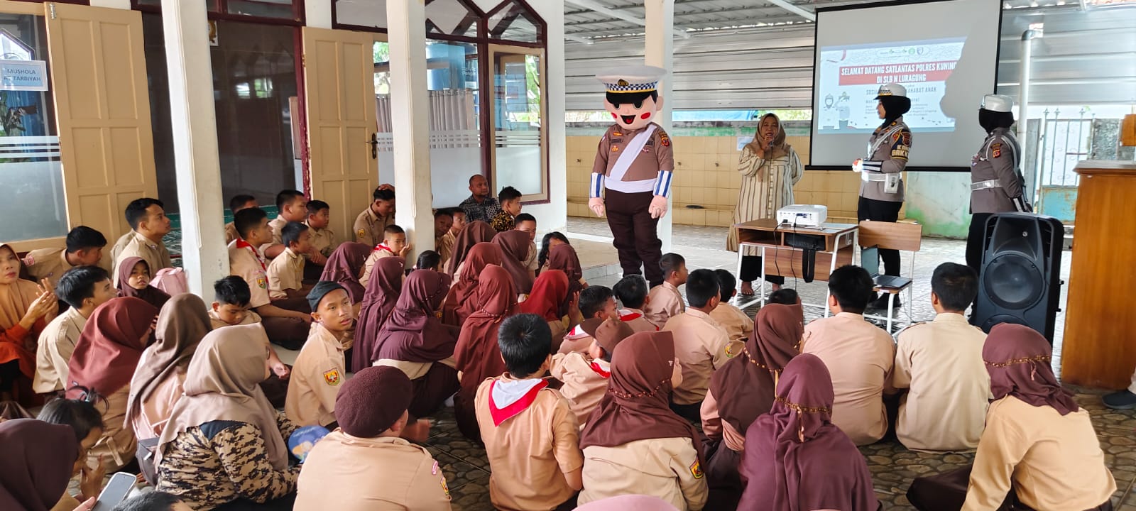Pantauan di lokasi, siswa-siswi tampak ceria dengan kehadiran para anggota Polisi dari Polres Kuningan, apalagi dengan munculnya sosok boneka polisi. Mereka pun berebut untuk berpoto, tidak ketinggalan orang tua hingga guru-guru pun turut berpoto bersama boneka polisi.
