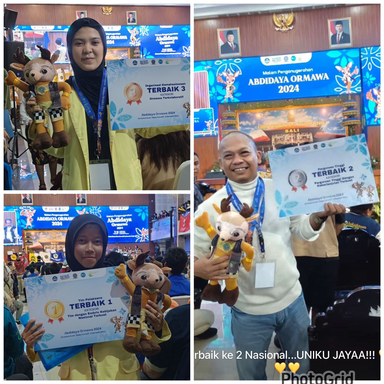 Masih menurutnya,perguruan tinggi yang mendapatkan pendanaan PPK Ormawa sebanyak 300-an,namun yang dinyatakan lolos hanya 66 perguruan tinggi. “Uniku bersaing dengan beberapa perguruan tinggi negeri dan swasta ternama di Indonesia. Alhamdulillah, Uniku di Abdidaya 2024 berhasil meraih prestasi Terbaik 1 Tim dengan Embrio Kebijakan Nasional Terkuat. Kemudian, Terbaik 2 Perguruan Tinggi dengan Keberlanjutan Terkuat dan Terbaik 3 Ormawa Terkolaboratif,” ucapnya lagi.