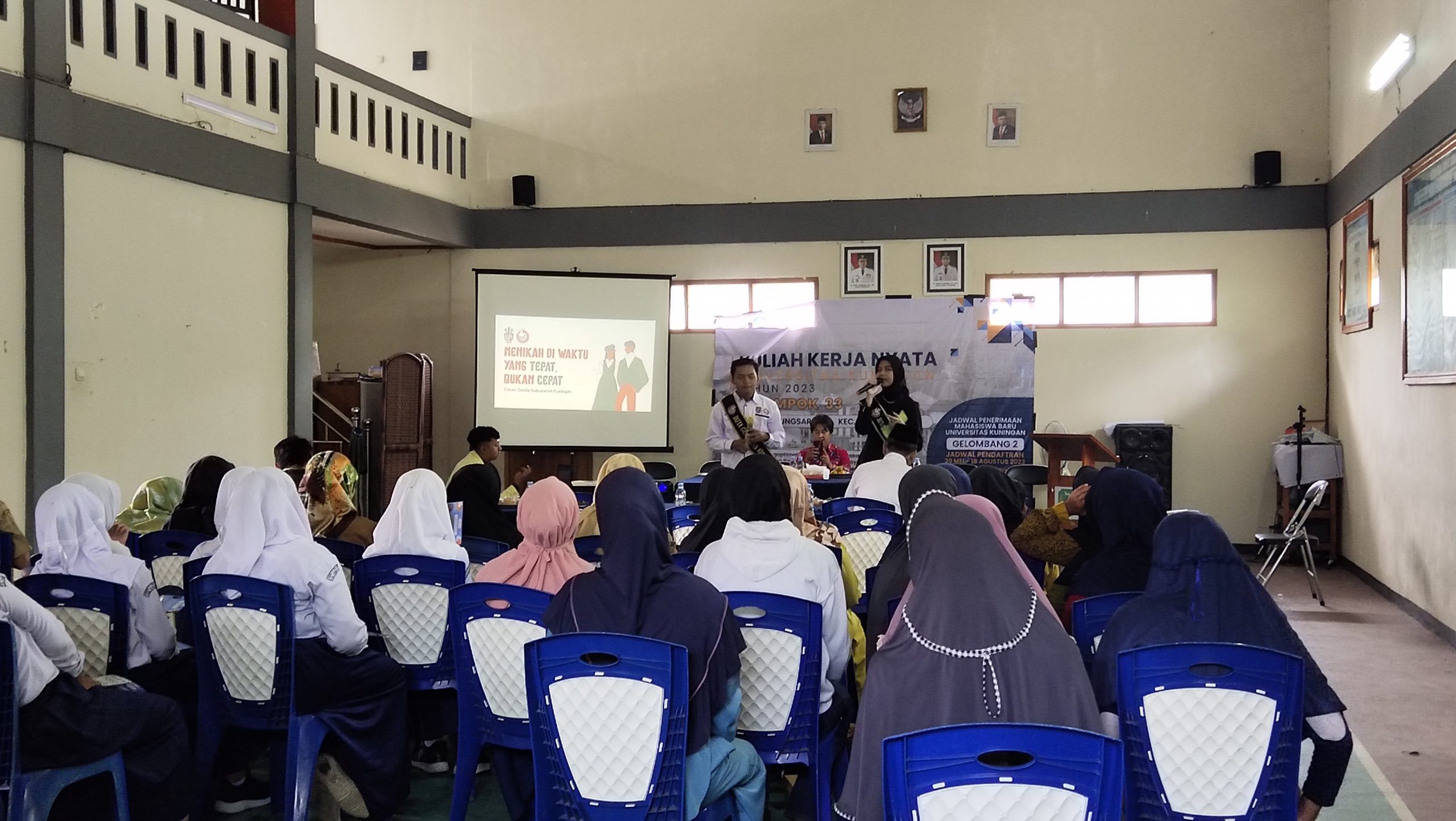 KUNINGAN ONLINE – Mahasiswa Kuliah Kerja Nyata Universitas Kuningan (KKN Uniku) kelompok 33 menggelar seminar bertajuk ‘Menikah Dini, Yuk Dipikir Lagi!’, di Desa Gunungsari Kecamatan Cimahi, Senin (24/7/2023).