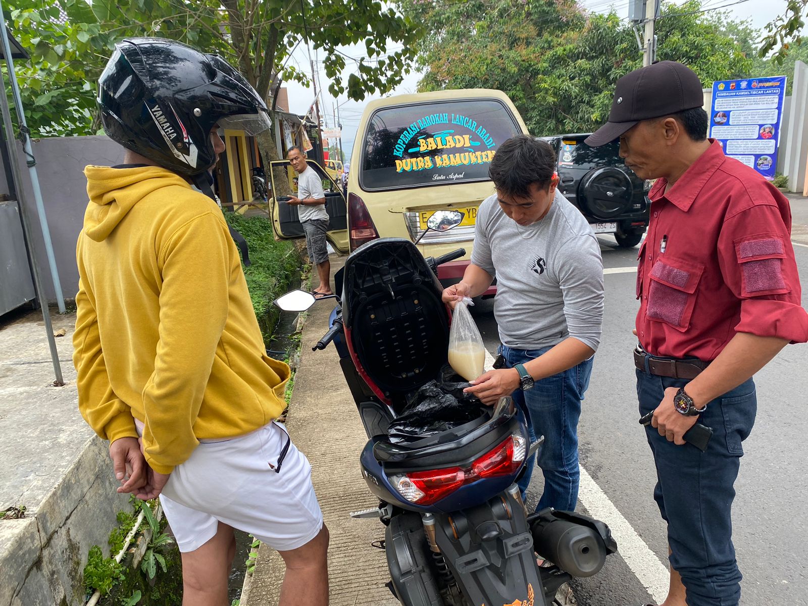 Setelah dilakukan penggeledahan, Kasat Udiyanto mengatakan, ditemukan 11 kantong plastic minuman keras jenis tuak yang disimpan di bawah jok motornya.