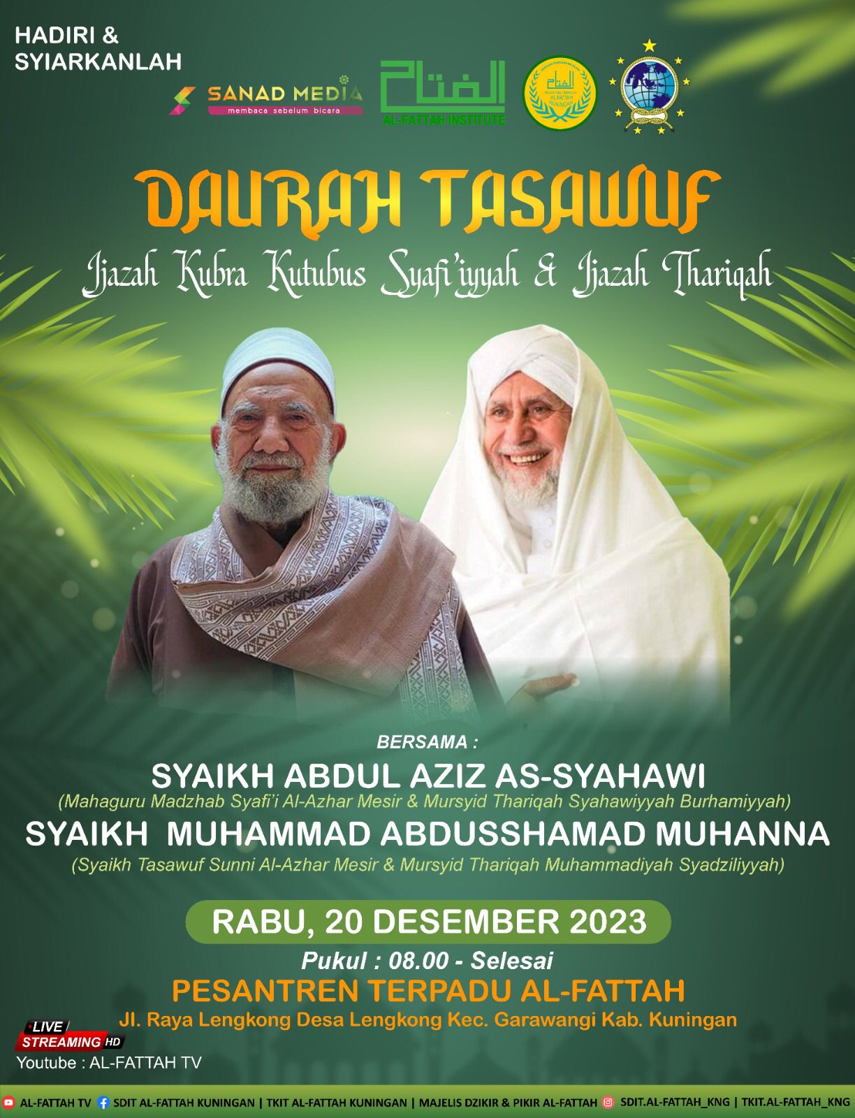 Pengasuh Pesantren Terpadu Al-Fattah, Dr. KH. Aang Asy’ari, Lc., MSI mengatakan Kehadiran Syekh Abdul Aziz Al-Syahawi al-Husaini dan Syekh Muhammad Muhanna al-Husaini akan memberikan kuliah umum dan berdialog dengan para ulama setempat untuk merespon dan menjawab problem kekinian masyarakat.