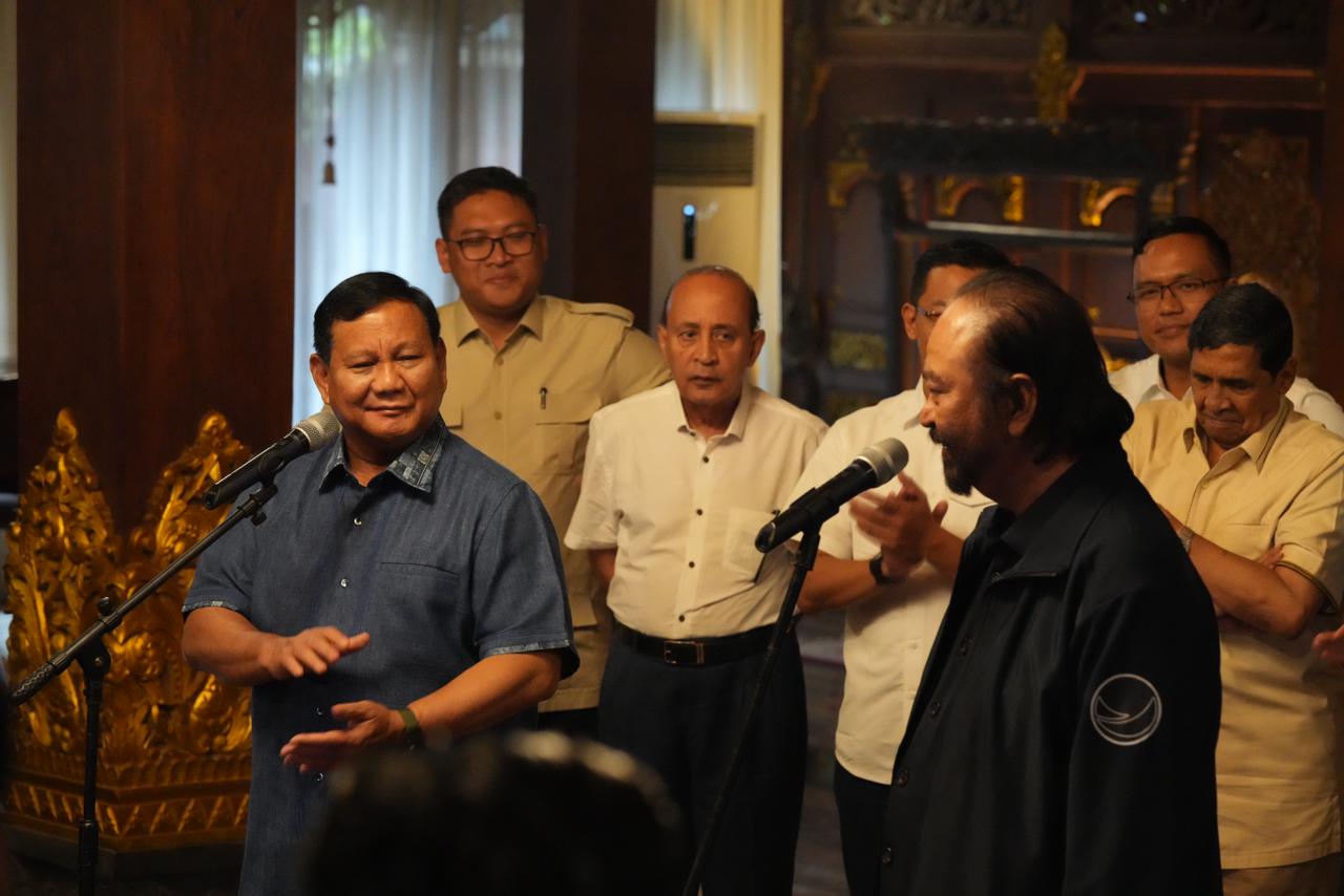 Prabowo Subianto dan Surya Paloh bersepakat untuk membangun suasana bangsa dan negara yang selalu kondusif, rukun bersatu yang berdampak pada terwujudnya perdamaian