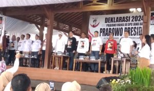 “Kami pendukung Jokowi Pantura Jawa Barat, mendeklarasikan Bapak Prabowo Subianto menjadi Presiden RI 2024. Kami pendukung Jokowi Pantura Jawa Barat, siap memenangkan Bapak Prabowo Subianto untuk menjadi Presiden RI pada Pemilu 2024 di seluruh Jawa Barat,” kata Ketua DPD Prabowo Mania 08 Jabar, Doni Akbar yang diikuti seluruh pengurus relawan yang hadir.