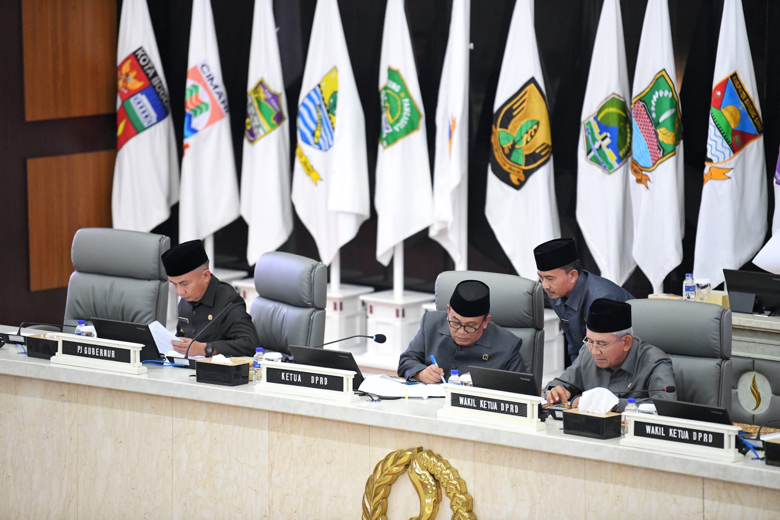 JAWA BARAT, BANDUNG – Dalam rapat Paripurna DPRD Provinsi Jawa Barat, Penjabat Gubernur Bey Machmudin menyampaikan pendapat terhadap tiga Ranperda Prakarsa, di gedung DPRD Jabar, Kota Bandung, Selasa (23/4/2024).