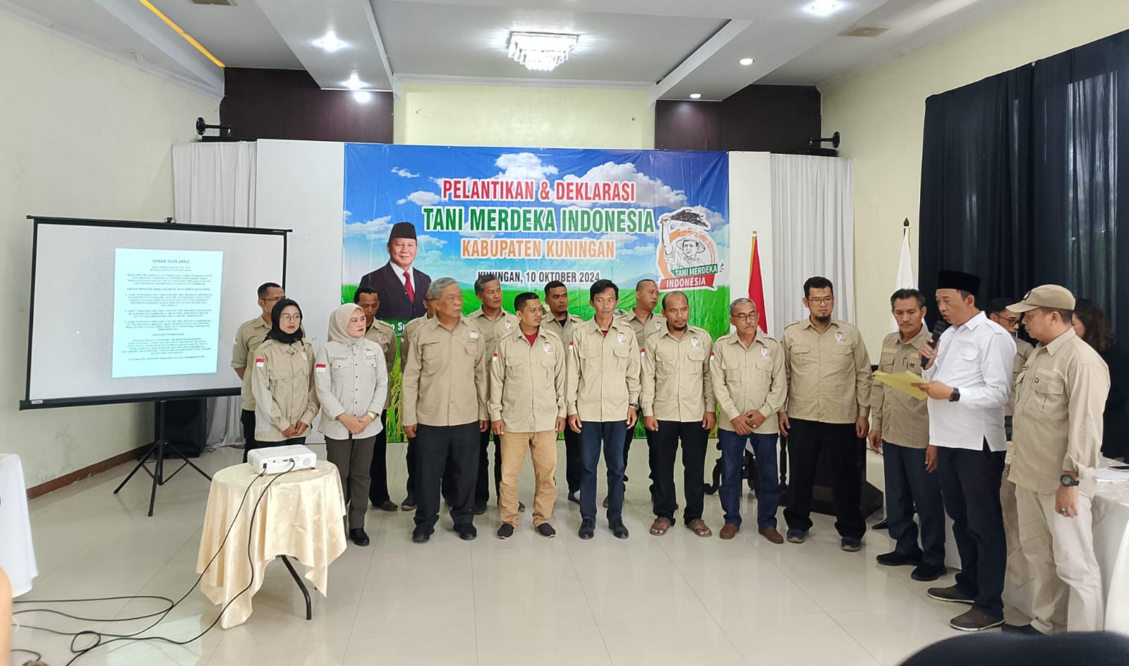 KUNINGAN ONLINE – Jajaran Pengurus Dewan Pimpinan Daerah Tani Merdeka Indonesia (DPD TMI) dan DPC Kabupaten Kuningan secara resmi dilantik, Kamis (10/10/2024).