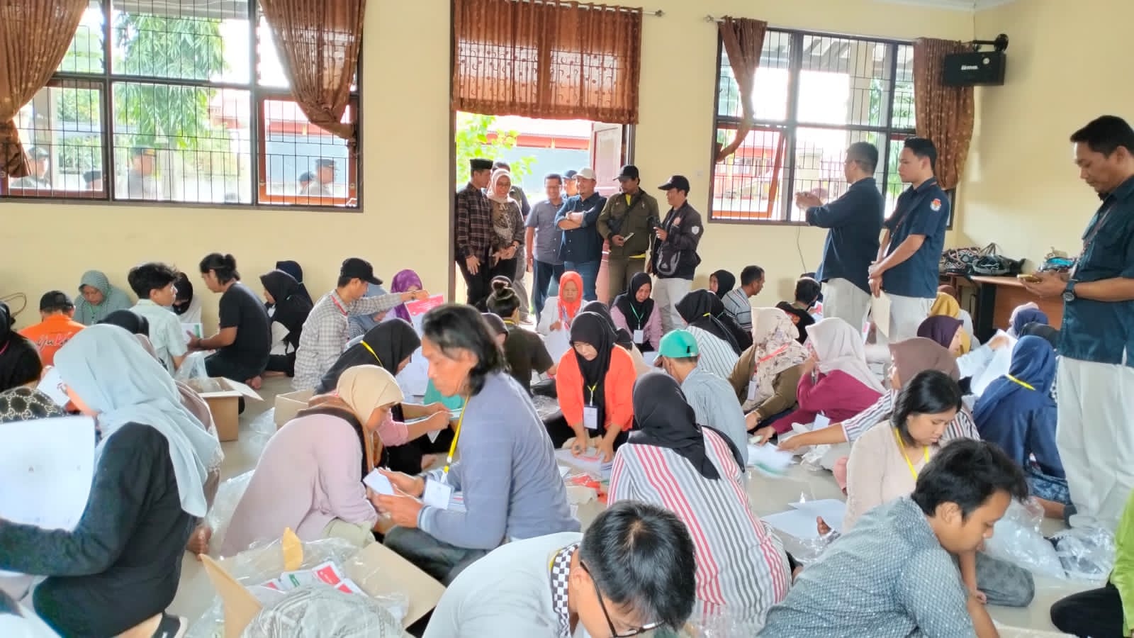 Ratusan pekerja terus berusaha mempercepat pekerjaan di Kantor BKPSDM Kuningan pada Kamis (11/1), dengan total surat suara mencapai 4.573.620 lembar untuk Pilpres, Pileg, dan DPD RI.