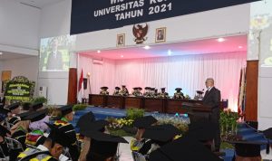 “Wisuda yang ke-26 kali ini kita selenggarakan dengan tetap mentaati protokol kesehatan karena masih dalam suasana wabah Covid-19,” ujarnya.