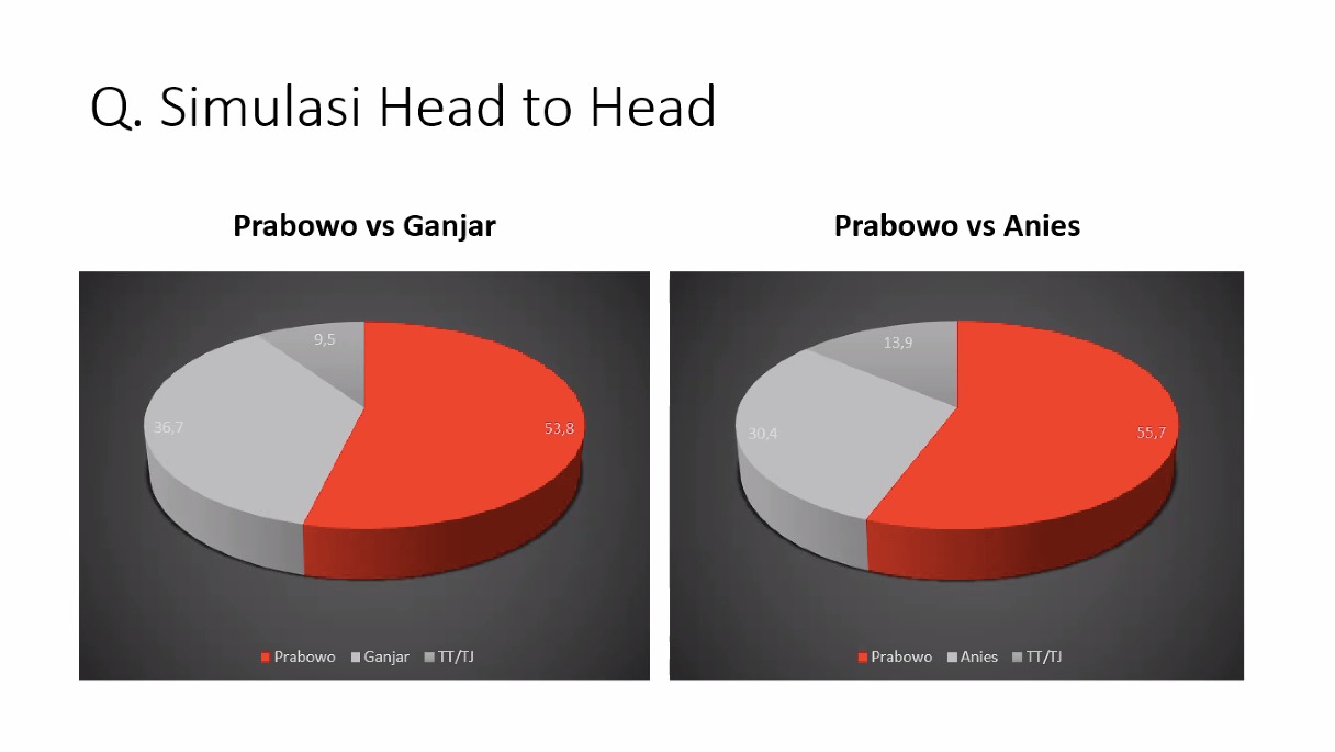 Di dalam surveinya, Ia menemukan bahwa tingkat popularitas dan akseptabilitas dari nama-nama tokoh menunjukkan, Prabowo Subianto lebih unggul.