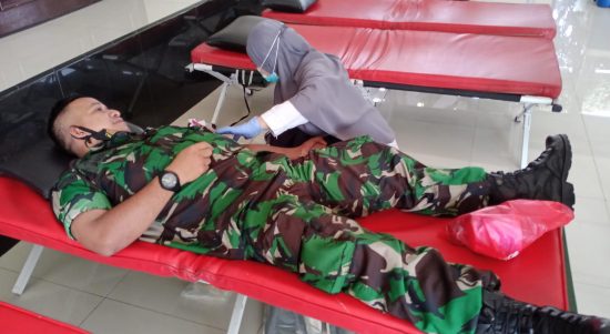 Peringati HUT RI ke 77, Puluhan Anggota TNI Donorkan Darah
