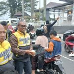 Hujan Tak Jadi Halangan, 500 Takjil Dibagikan KNPI dan Polres Kuningan kepada Pengendara