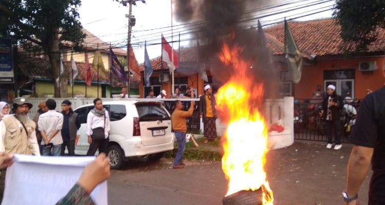 Firman Ketua Bawaslu Kuningan Kabur Keluar Kota, Massa FMPK Bakar Ban Bentuk Kekecewaan