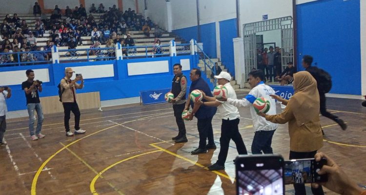 KUNINGAN ONLINE — Suasana meriah dan penuh semangat mewarnai gelaran pertandingan persahabatan (exhibition match) bola voli putri antara tim Wahana