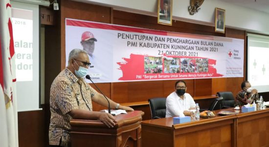 KUNINGAN ONLINE – Bupati Kuningan H. Acep Purnama, menutup sekaligus memberikan Penghargaan Bulan Dana PMI Kabupaten Kuningan Tahun 2021 yang