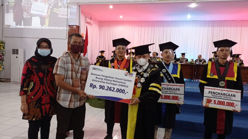 Proses penyerahan bantuan tersebut, diserahkan secara langsung oleh Kepala Cabang Bank BRI Kanca Kuningan Ivan Abdul Latif melalui Ahmad Nawawi bagian pemasaran kepada Rektor Uniku Dr. Dikdik Harjadi, pada saat proses pelaksanaan wisuda ke-26 sesi pertama di Gedung Student Center Iman Hidayat beberapa waktu yang lalu.
