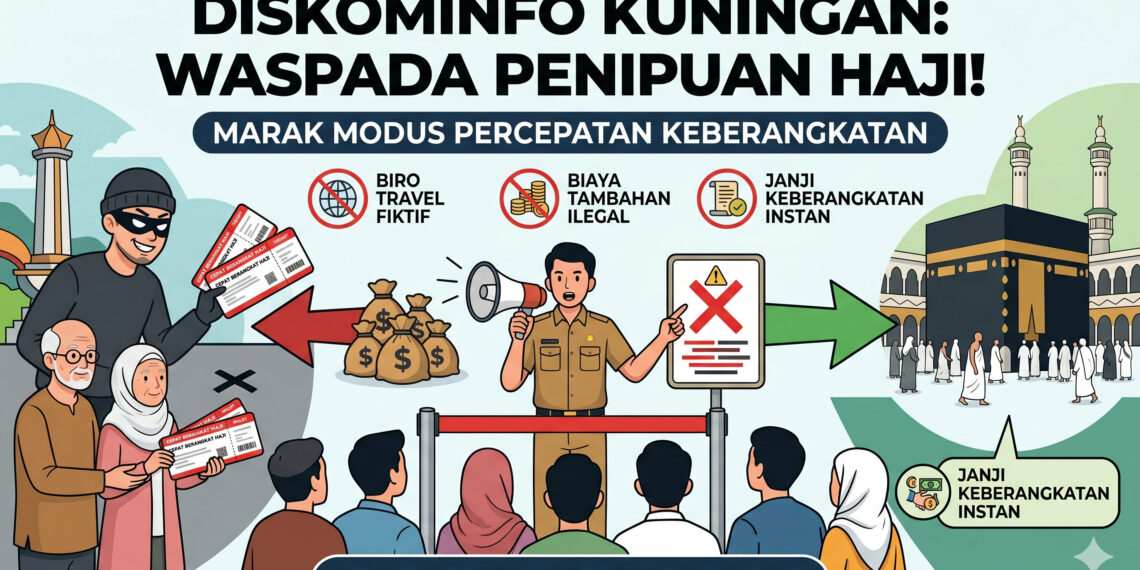 KUNINGAN ONLINE — Dinas Komunikasi dan Informatika (Diskominfo) Kabupaten Kuningan secara resmi mengeluarkan peringatan kepada masyarakat, khususnya calon jemaah haji, agar meningkatkan kewaspadaan terhadap maraknya praktik penipuan yang mengatasnamakan layanan haji dan instansi pemerintah.