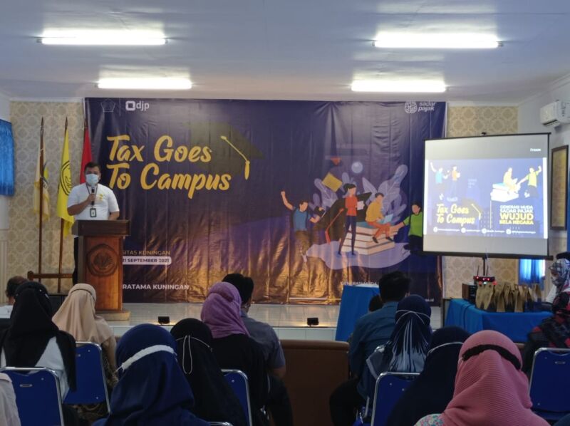 “Tax Goes to Campus merupakan kegiatan yang setiap tahun dilakukan. Pada tahun ini mengusung tema generasi muda sadar pajak wujud bela negara. Selain kegiatan tax goes to campus pada bulan sebelumnya, telah dilaksanakan kegiatan yang sama namun kegiatan tersebut dinamakan pajak bertutur dan dilaksanakan di SMAN 2 Kuningan,” kata Junanda selaku Kepala KPP Pratama Kuningan di Aula FE Uniku, Selasa (21/9).